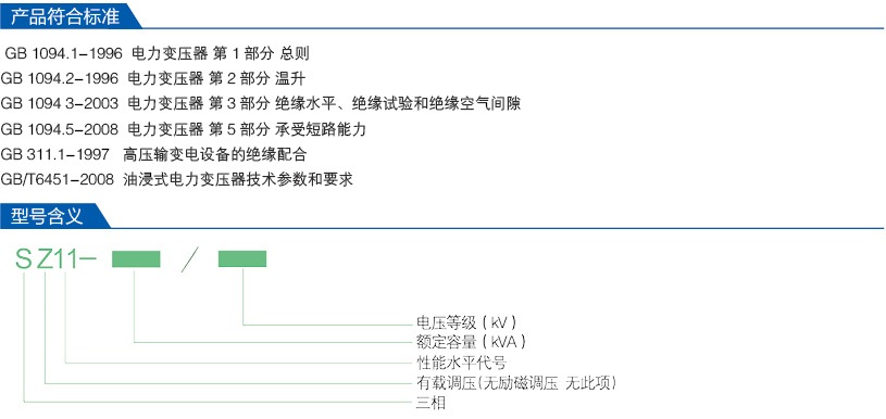 35kV级SZ11、S11型电力变压器是在成熟产品绝缘结构的基础上设计开发的;采用了高导磁、低损耗的高品质高性能硅钢片,降低了空载,是新型节能型产品。该系列产品结构成熟、工艺稳定,具有低损耗,低噪声和免维护等特点,适用于多种电网中。该产品通过空教、负载能效性能远低于国标规定值,达到能效等级,并与2014年4月通过网上案(2014-Z1-6754-369393)。